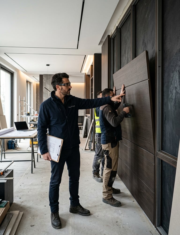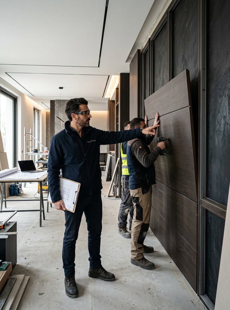 Beyond design, PRA STUDIO manages the entire project process. When required, the studio organizes local installation teams, supported by experienced contractors, ensuring that every project is delivered in full alignment with the design vision and technical standards.